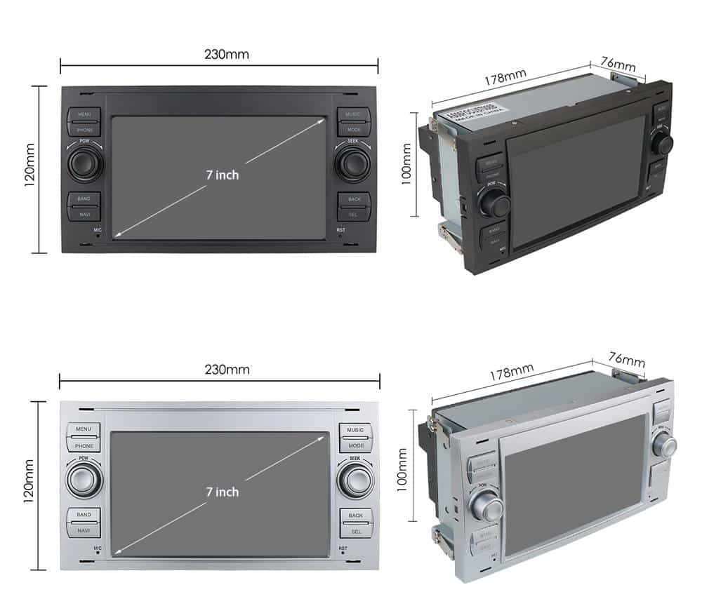 Auto Rádio GPS Android FORD FOCUS, FIESTA, KUGA, S-MAX, C-MAX [Cantos Retos] (7")