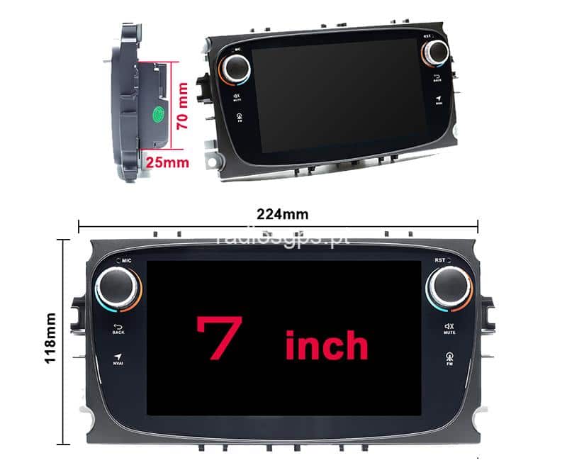 Auto Rádio GPS Android FORD FOCUS, MONDEO, KUGA, S-MAX, C-MAX [Cantos Curvos] (7")